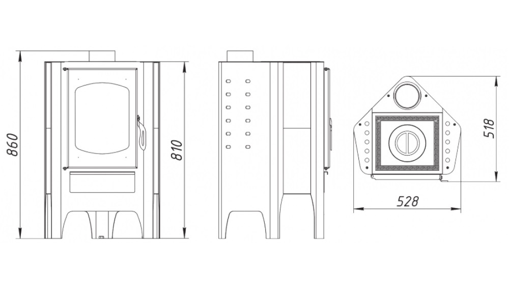 Печь малогабаритна, но при этом производительна. Она в считанные минуты прогревает помещение площадью до 44 м2.