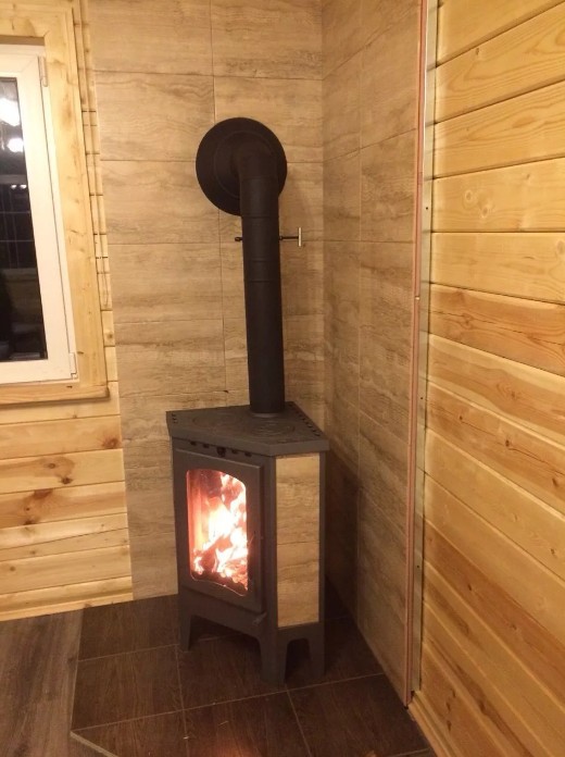 Внешний вид печи весьма привлекательный. Боковые поверхности облицованы керамической плиткой, а сам дизайн достаточно лаконичный.