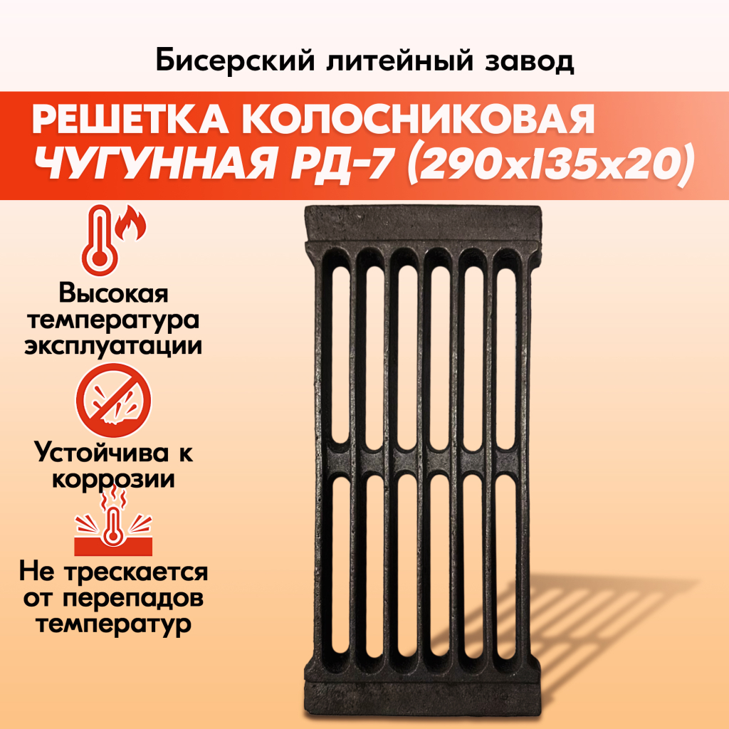Решетка колосниковая РД-7 (132х290) чугунная для печи,правильные колосники для котлов